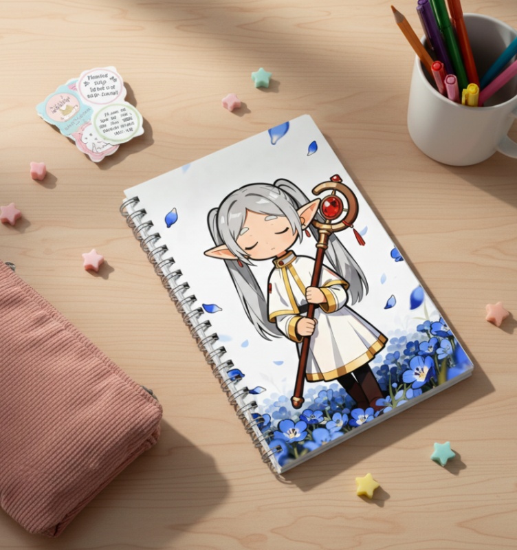 Anime dünyasının sevilen karakterlerinden ilham alan Frieren temalı anime defter, estetik tasarımı ve kaliteli baskısıyla anime severler için özel olarak tasarlanmıştır. Fantasy anime tarzını yansıtan bu spiral ciltli anime defteri, hem günlük notlar hem çizim hem de hediye için mükemmel bir tercihtir.
